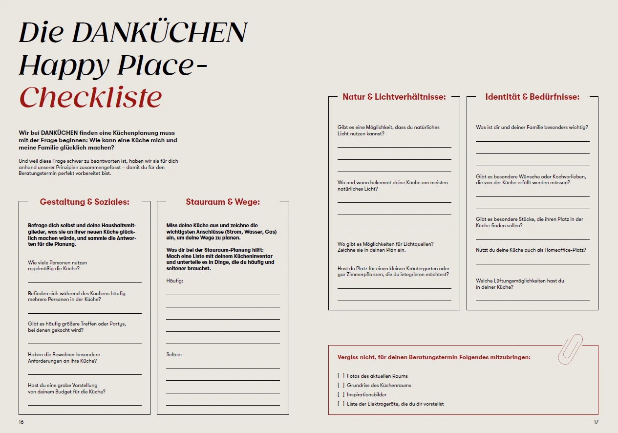 Falls bereits vorhanden, bring bitte einen Grundriss oder Plan mit. Gegebenenfalls sind auch Fotos von deiner bestehenden Küche oder Inspirationsbilder deiner neuen Traumküche immer hilfreich für uns. Zusätzlich kannst du unsere vorbereitete Checkliste nutzen, um den Termin optimal vorzubereiten und nichts zu vergessen.