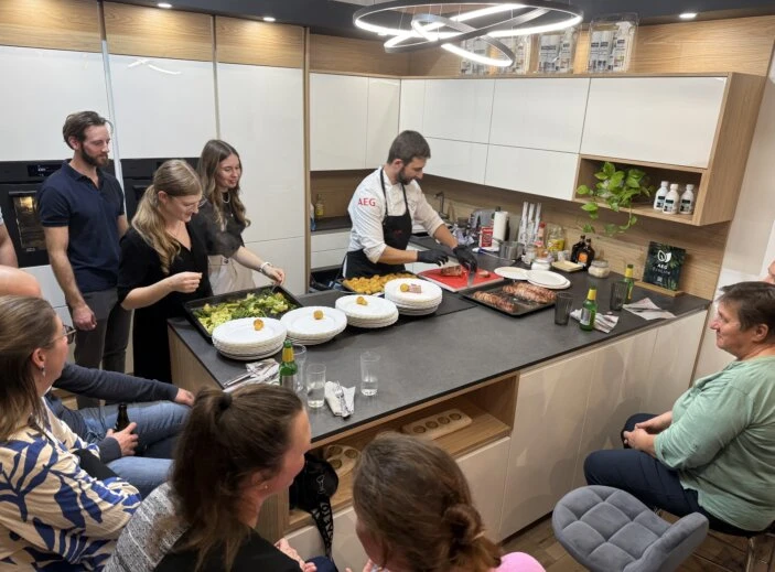 Am Montag, den 10. November 2025, verwandelte sich unser Küchenstudio D. Haring in Oberndorf in einen Treffpunkt für alle Genussliebhaber und Fans moderner Küchentechnik. Gemeinsam mit Showkoch Markus Grillenberger durften wir bei unserer AEG KOCHSHOW hautnah erleben, wie kulinarische Kreativität und innovative Küchentechnik perfekt miteinander harmonieren.