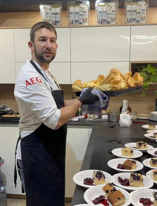 In entspannter Atmosphäre zeigte Markus Grillenberger eindrucksvoll, welche Möglichkeiten der AEG Kombidampfgarer bietet. Von der Zubereitung gesunder Gerichte bis hin zu kreativen Kochideen – alles wurde praxisnah und anschaulich demonstriert.