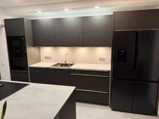 Eine kompakte Küchenzeile vereint auf kleinem Raum alle wichtigen Funktionen und eignet sich perfekt für begrenzte Platzverhältnisse.